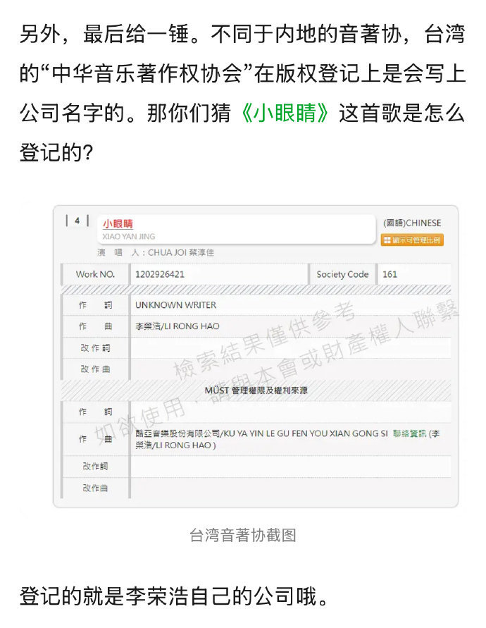 网友质疑李荣浩撒谎有网友质疑李荣浩关于《小眼睛》的版权问题说谎了,