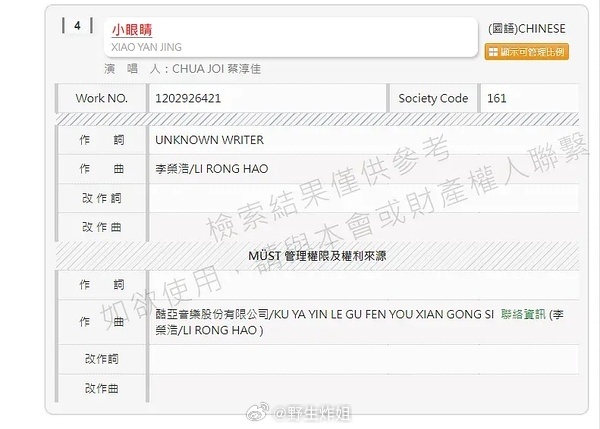 简单总结就是李荣浩声明中所谓的“版权公司结业”根本不成立,大陆艾回关了但是台湾省的艾回根本没关。而且他自己的公司甚至在中国台湾的音协登记了