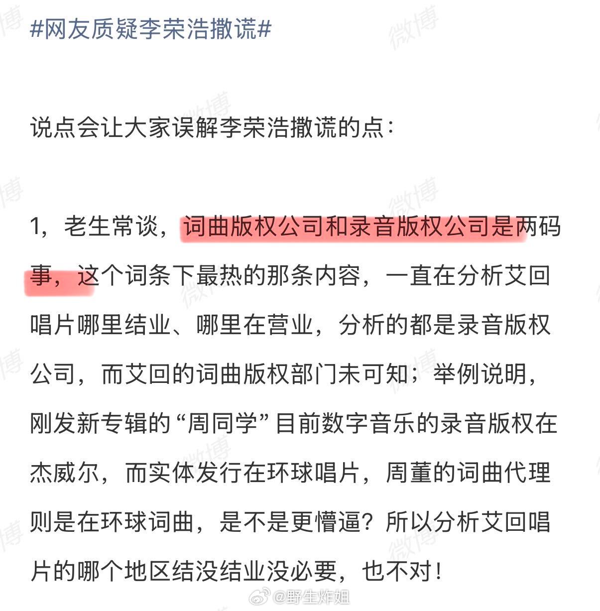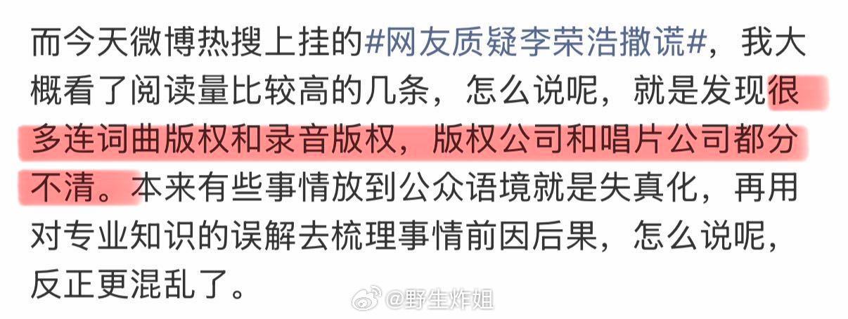 乐评人解读李荣浩被质疑 说简单点就是《小眼睛》这首歌李荣浩只有署名权,根本拿不到版税收益。当初是他误把扒带Demo打包卖掉,才被动挂上名字,如今想撤歌从词曲版权方角度他也没有话语权,梳理完业内规则就明白了