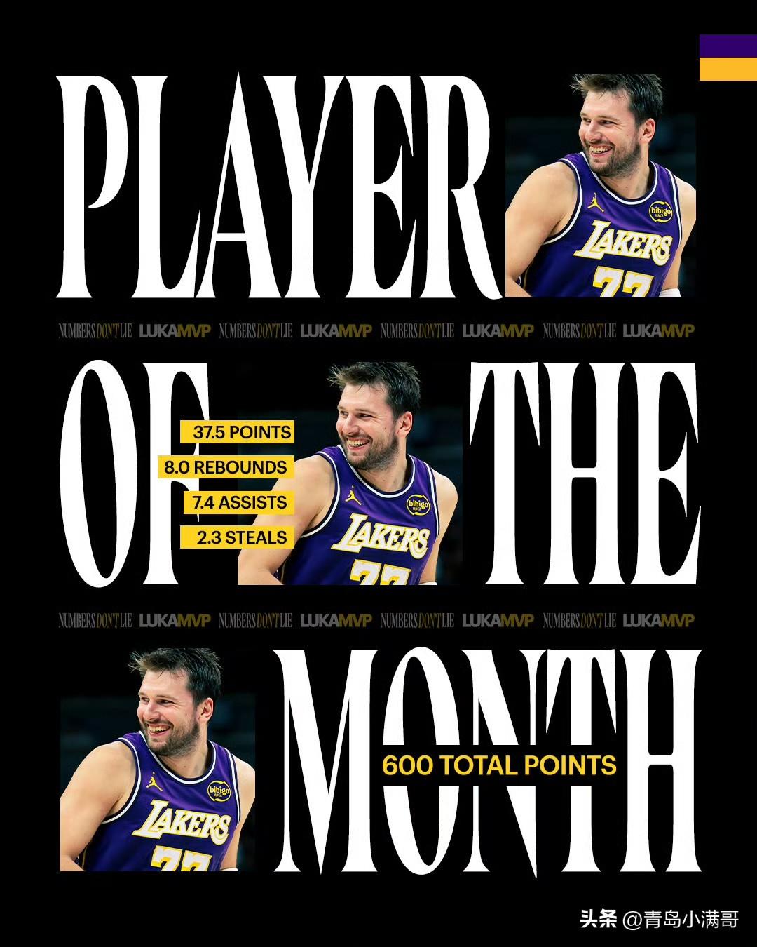 祝贺约翰逊和东契奇,值得一提的是,这是东契奇本赛季第二次当选月最佳球员,继续加油!湖人 东契奇 老鹰