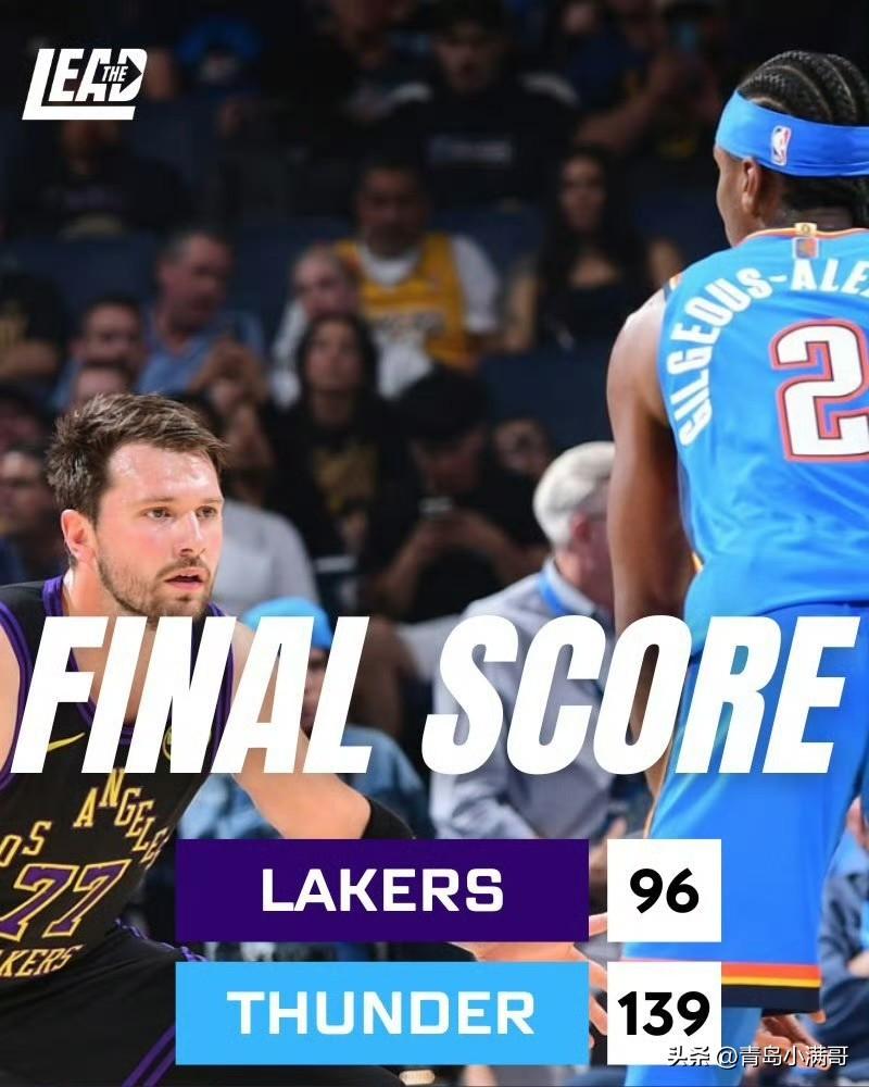在刚刚结束的一场焦点战中,湖人客场96-139不敌惨败雷霆,和我们早晨预测的一致,湖人被完爆,而且是从首节比赛就已经定下了全场比赛的基调。