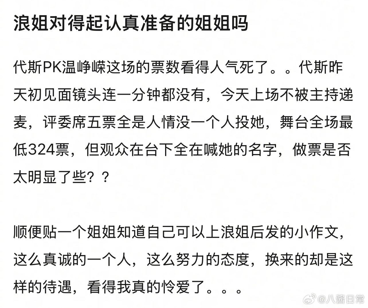 浪姐直播现在代斯票数垫底可能今天会被淘汰,弹幕都在说救救代斯