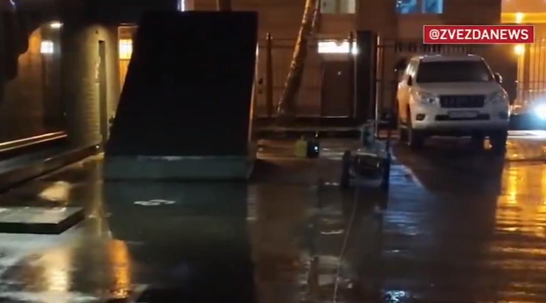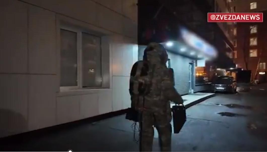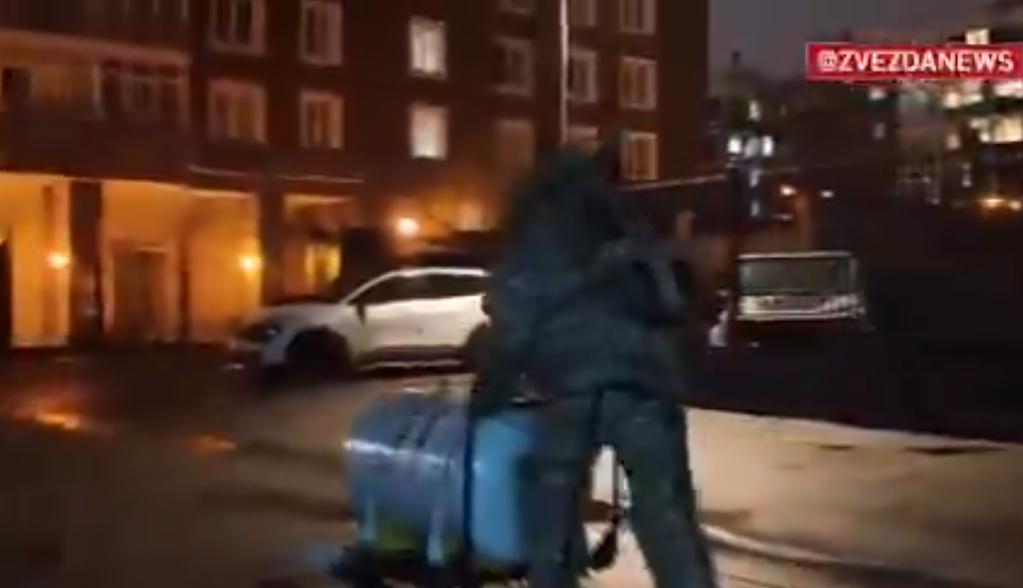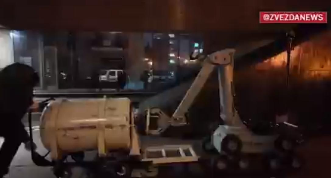 ZVEZDANEWS 发布的视频显示,爆炸物处理人员和一台拆弹机器人在夜间处理该装置,画面中可以看到翻倒在人行道上的滑板车以及一个疑似爆炸装置的电子元件。