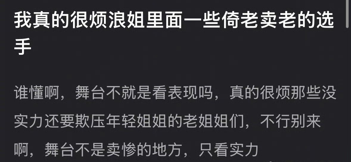 网友说很讨厌浪姐里面倚老卖老的艺人,大家怎么看?