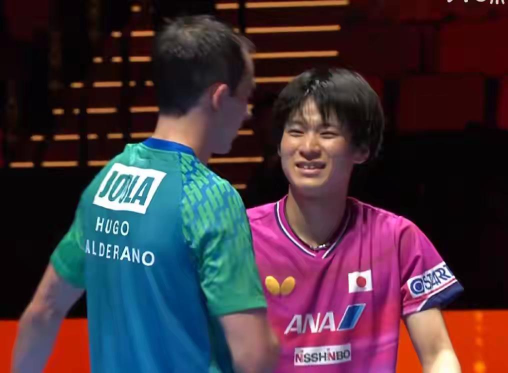 8-11,户上隼辅迅速调整,用近台快攻节奏扭转局势。