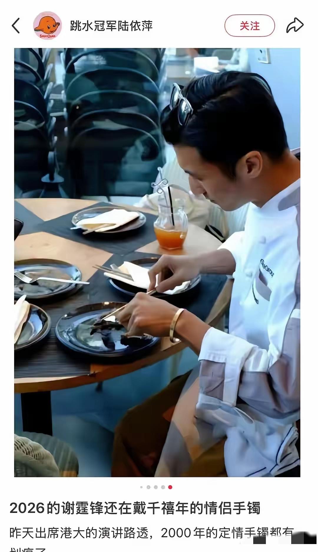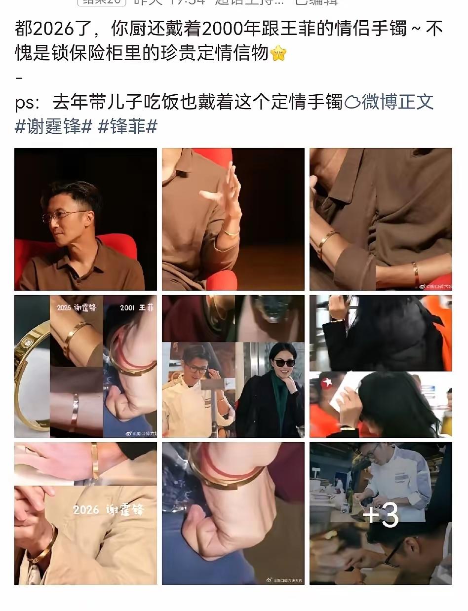 这对情侣款手镯是两人热恋时的甜蜜见证,算下来已经陪伴他们走过近三个十年。更绝的是,这镯子在谢霆锋这儿堪称“爱情时光胶囊”。