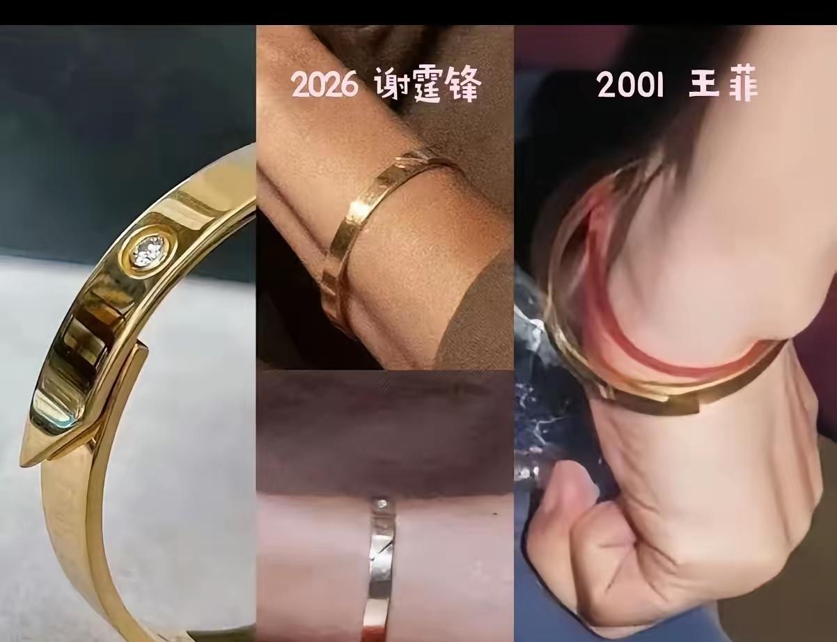 这只卡地亚LOVE系列手镯,设计自带专属寓意,需要专用螺丝刀才能佩戴拆卸,当年谢霆锋特意选这款,就是想把这份感情牢牢锁住,26年过去,手镯依旧完好,丝毫没有磨损痕迹。