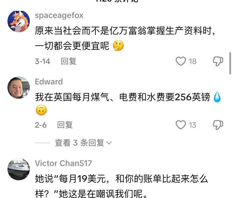 北京妹子晒自己每个月的水电费是19美元,让各国网友破防,很多人纷纷晒出账单对账