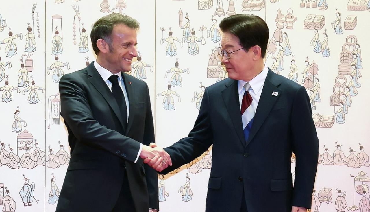 4 月 3 日,马克龙在延世大学面对满场学生,一改往日外交场合的温吞,直言不讳地表示,法国和韩国都不想当两个霸权国家的附庸,既不想依赖中国的主导地位,也不愿过度暴露在美国政策的不确定性之下。