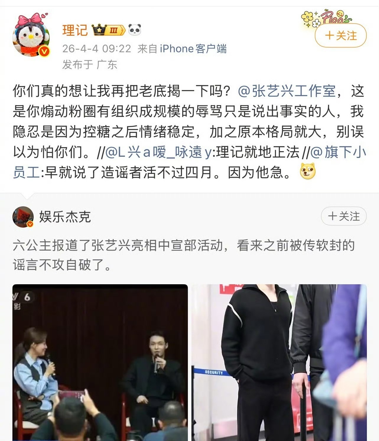 张艺兴昨天参加了一个活动,理记又发了长篇大论出来锤他…