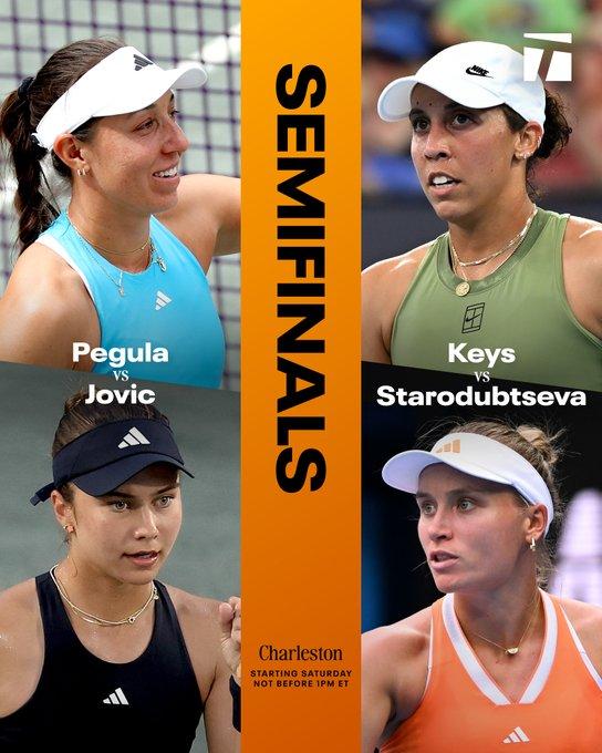 ATP250休斯顿四强产生 (4)保罗vs(2)蒂亚福 蒂兰特vs布鲁查加 WTA500查尔斯顿产生四强 (1)佩古拉vs(4)约维奇 (5)凯斯vs斯塔罗布采娃 焦点大战均是美国内战, 谁能晋级决赛?
