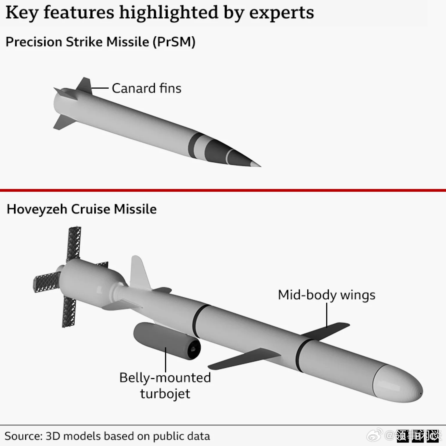 他们补充说:“我仍然确信所看到的武器是 PrSM,而不是伊朗的 Hoveyzeh 巡航导弹——两者外观截然不同。”