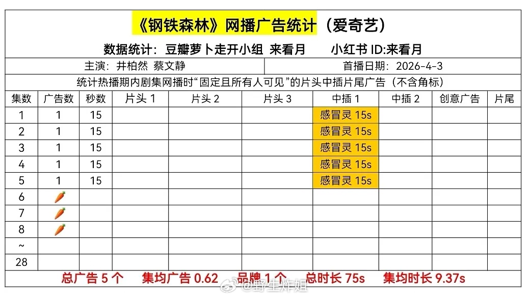 4月4日 在播剧广告统计(月鳞1广,提灯、欢喜2广、钢铁森林🥕