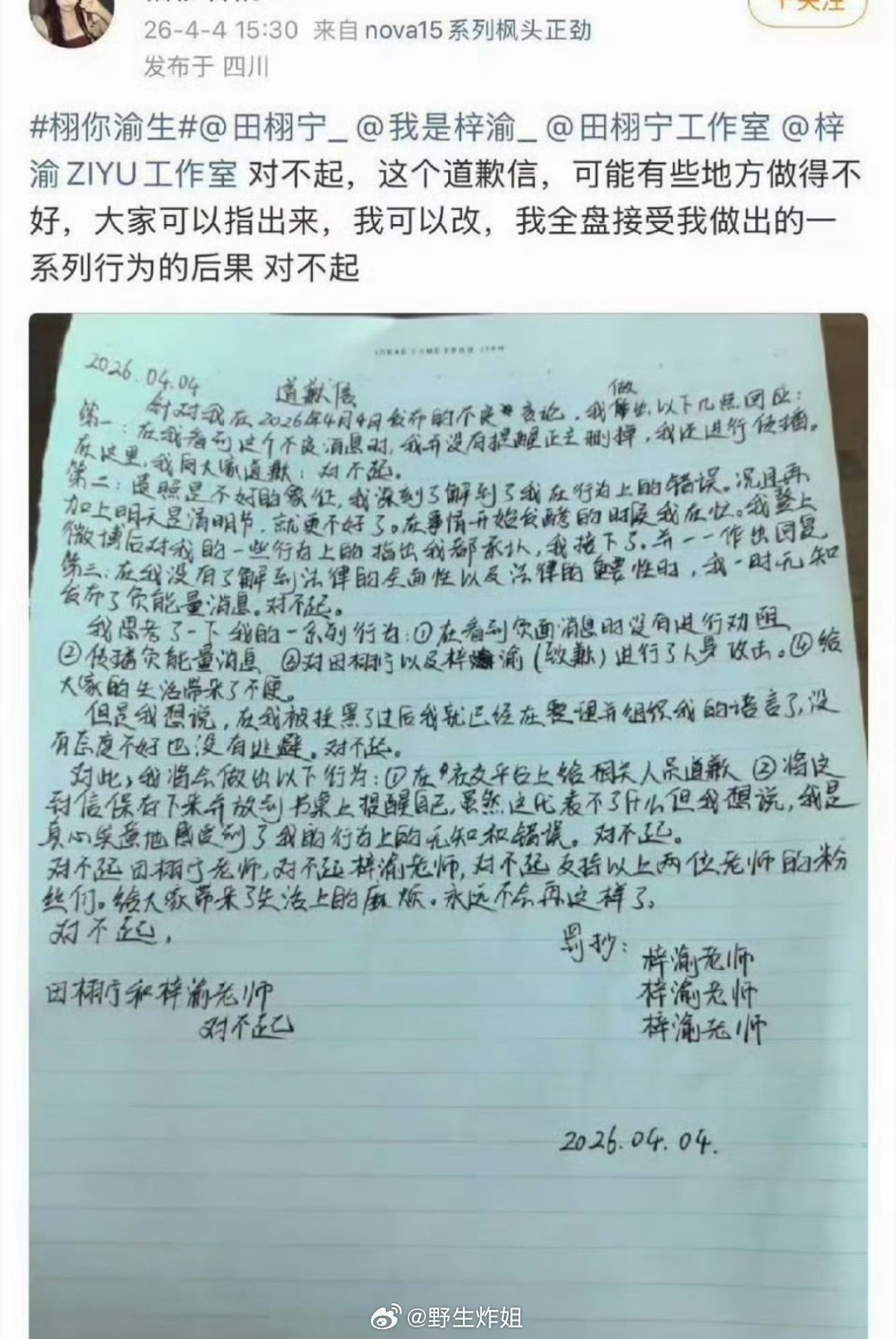 田栩宁跟梓渝的CP粉栩你渝生直接跟王橹杰、穆祉丞的CP粉道歉了,这两家还有这些纠纷呢,真的是没想到啊