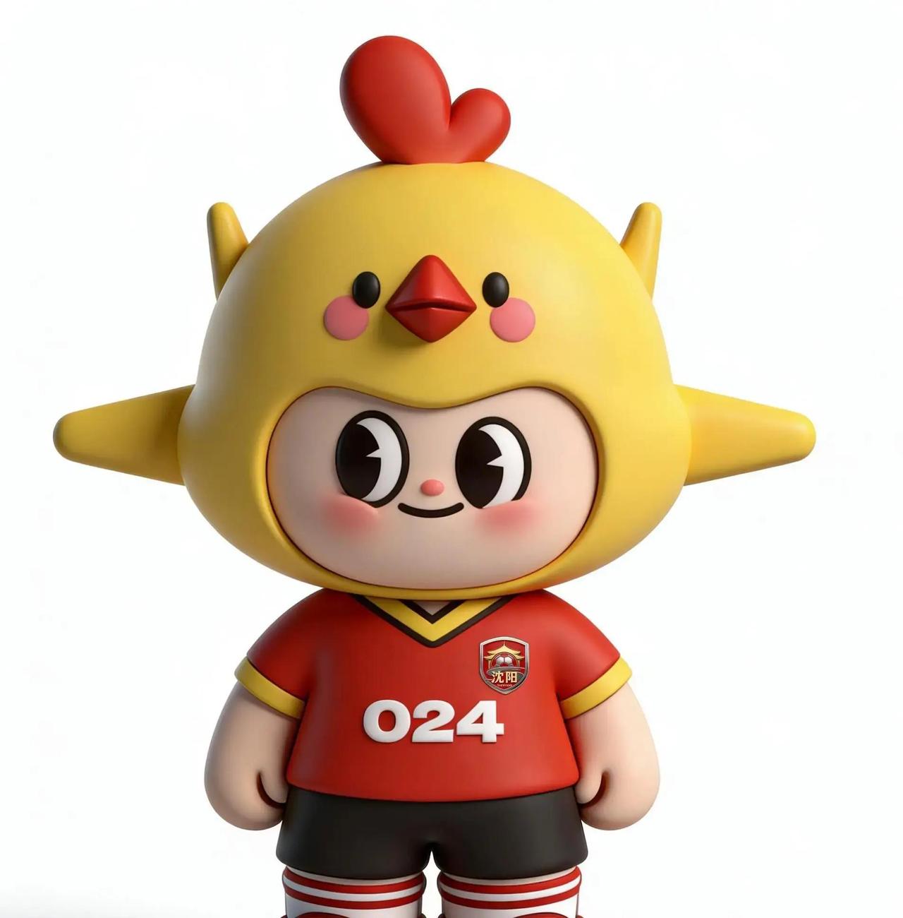 这个圆滚滚小将,灵感直戳沈阳老底子:公鸡造型融进鸡架那股子市井热乎劲儿,外加军工战斗机的铁血锋芒。身披024号战袍,胸前赛区队徽闪闪,奔跑间透出东北汉子的倔强劲儿。工业重镇的硬气,竟藏在这么个软萌壳子里?这反差不光可爱,还直击人心底那份城市自豪——沈阳的荣光,从工厂车间跑到足球场,硬是让赛事多出层烟火味儿。