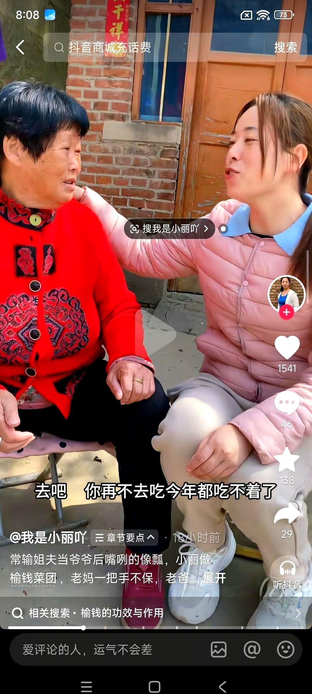 轮到招呼别人,镜头一开,不是红薯面饺子,就是这碗榆钱饭。东西不值钱,就是想让你用好话给她把面子挣回来。