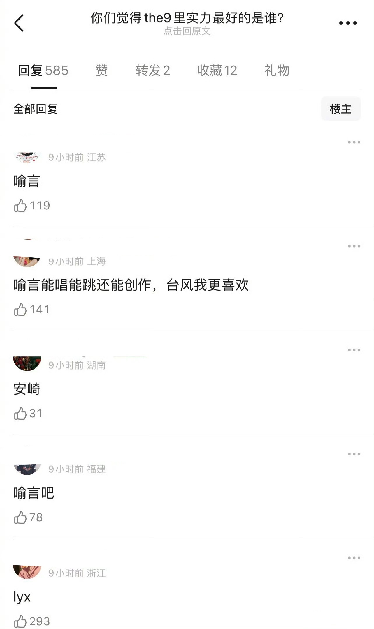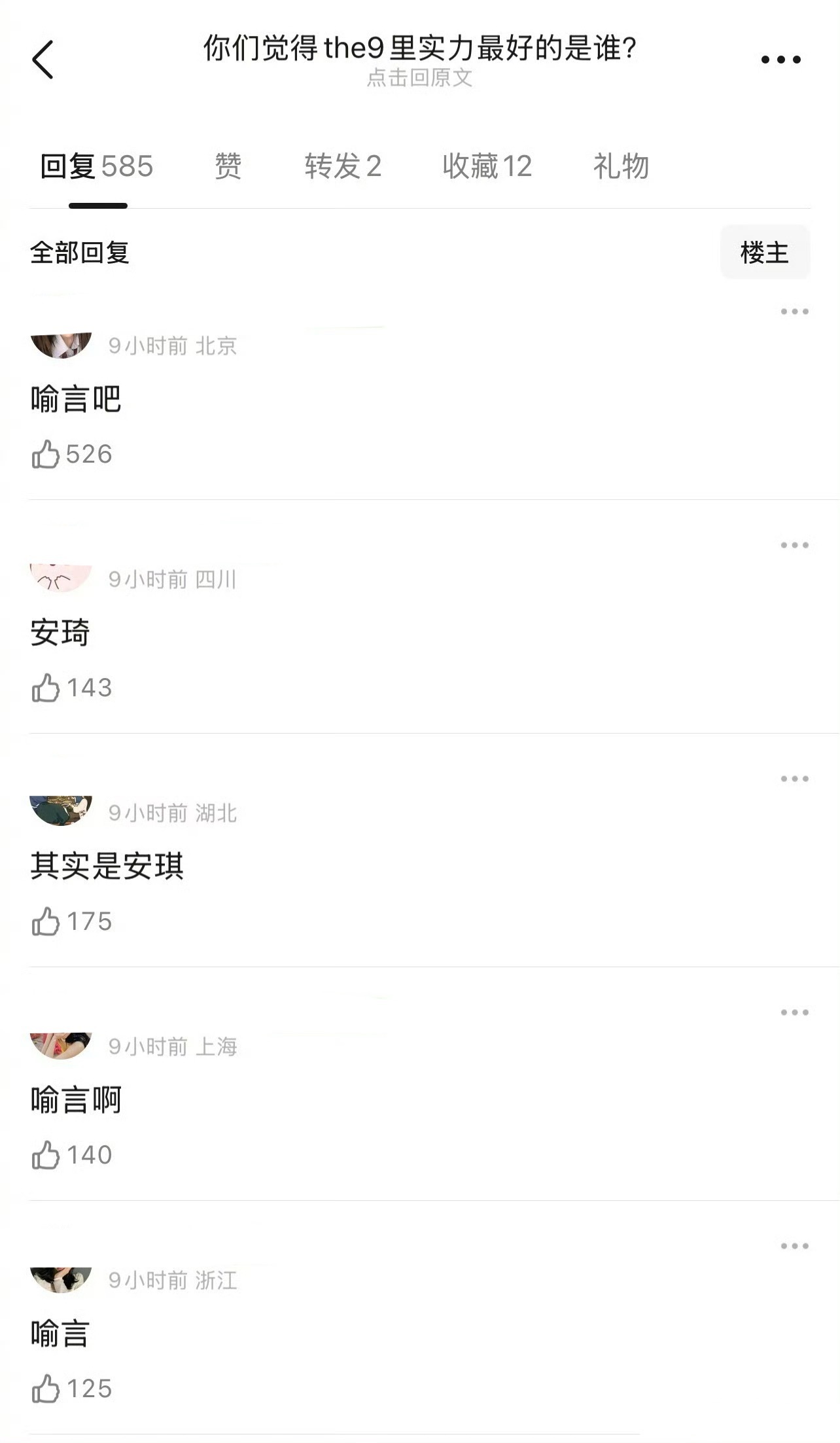 大家觉得THE9里刘雨昕、虞书欣、许佳琪、喻言、谢可寅、安崎、赵小棠、孔雪儿、陆柯燃,谁的实力最好?