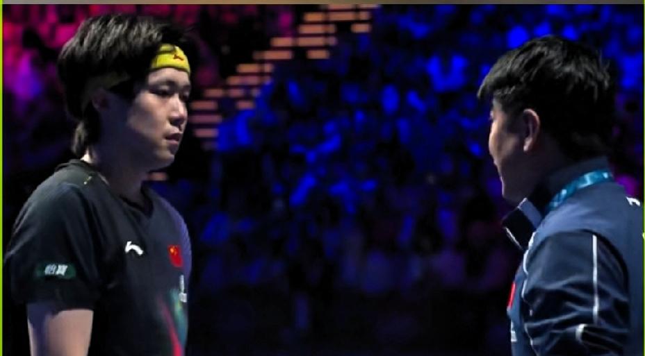 第四局,楚钦3-0开局;果子叫了暂停,3-1;4-1;4-2;4-6;对手搏杀,连续得分;5-8;6-10;6-11;果子扳回一局!