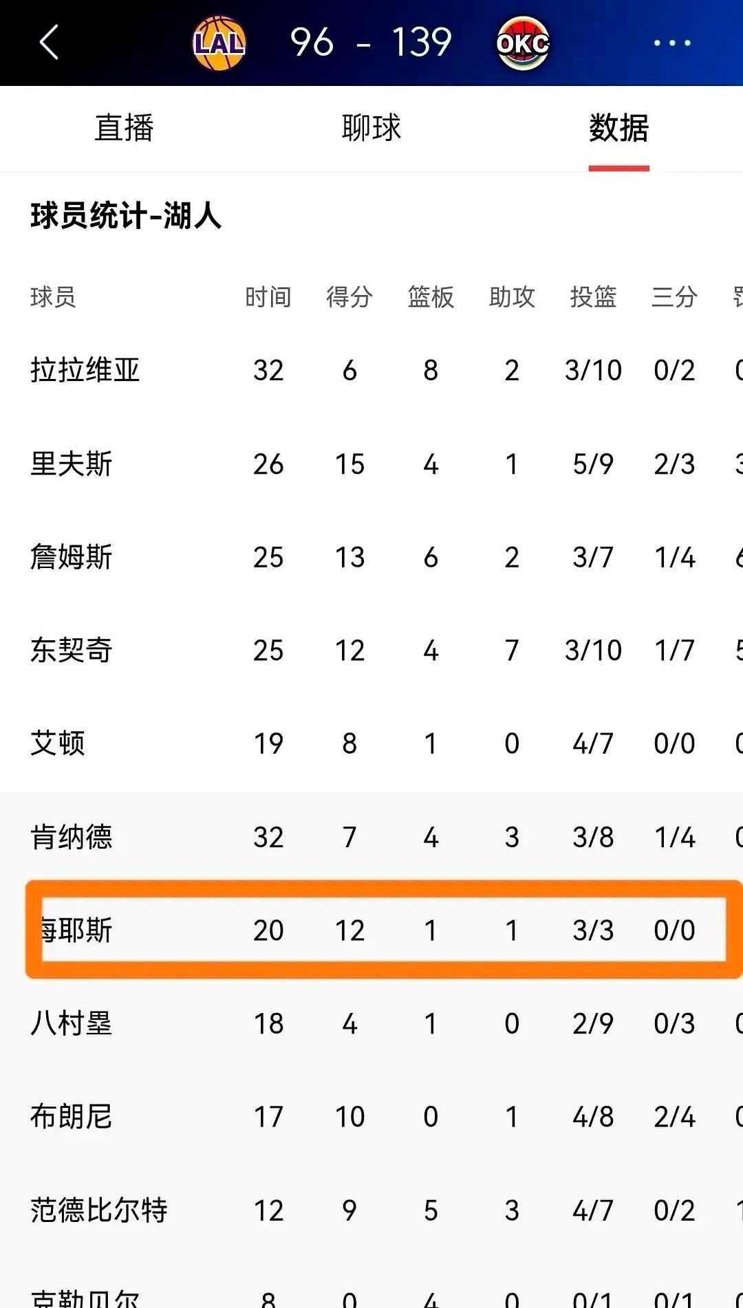 首发中锋艾顿打了20多分钟,就1个篮板。替补的海斯更绝,进攻端3投3中拿了12分,看着还行,结果篮板也是1个!他俩加起来,护框等于不存在。雷霆的亚历山大半场就轰下21分,全场28+7+7,正负值+35,太轻松了。