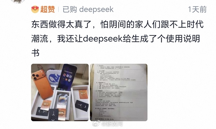 即便祭扫这件事始终有些严肃而传统的色彩,“AI”的风也还是从人间吹到了“九泉之下”。记者从多家购物平台看到,各类AI软件的app纸扎祭品并不鲜见。OpenClaw、DeepSeek、Gemini……市面上热销的AI软件,都有了纸扎版图标。一名消费者评论:“怕‘阴间’的家人们跟不上时代潮流,我还让DeepSeek给生成了使用说明书。”该消费者上传的说明书铺满整张A4纸,收尾是一句“如果想我们了就对它说‘告诉孩子们……”(记者刘杰)#清明时节一起敬读碑文# 原文:网页链接
