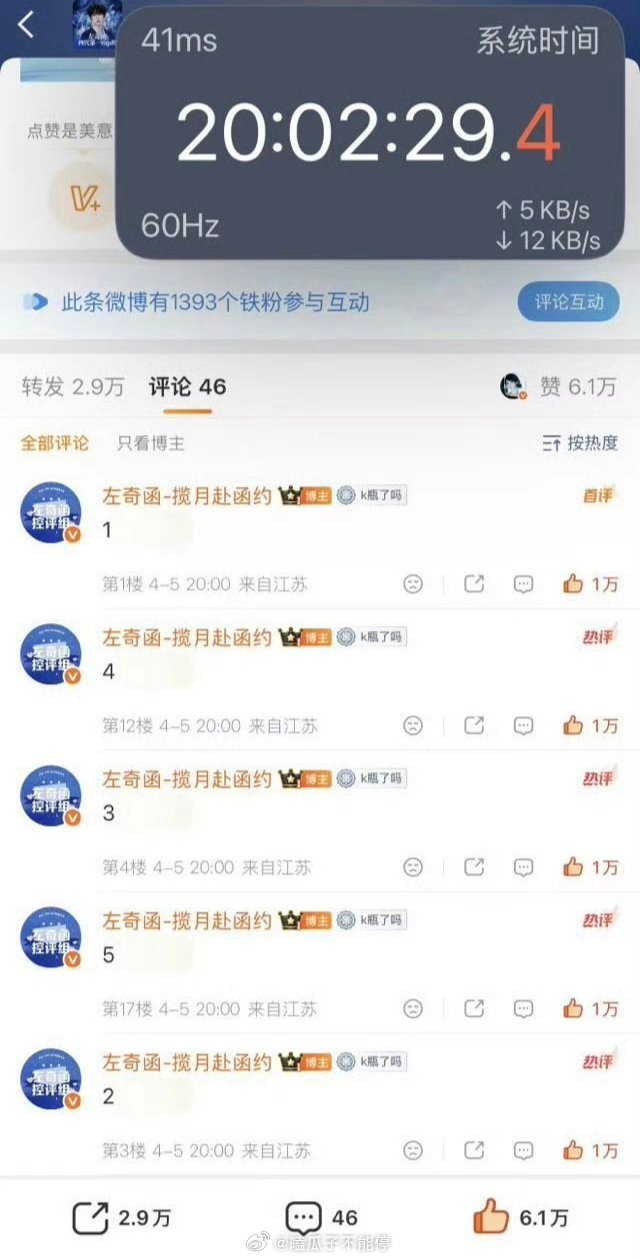 左奇函测速结果:两分钟1.2万👍🏻 10min不到10w👍🏻!