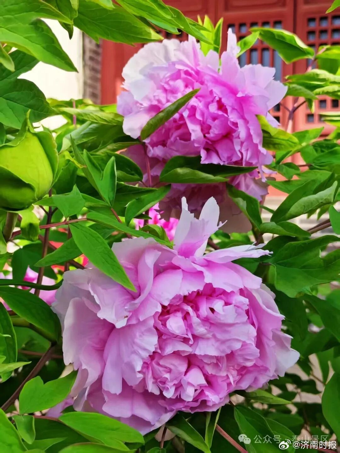 【世遗瑰宝!#泰山红门宫300年牡丹惊艳绽放#】清明春色染岱麓,泰山红门宫内树龄三百余年、列入世界遗产保护名录的传统牡丹“宫样妆”,恰逢佳节如期盛放。国色天香惊艳八方,不仅是泰山春日的视觉焦点,更以跨越世纪的生命力,成为清明假期游客眼中最具分量的打卡地标。(泰山景区)