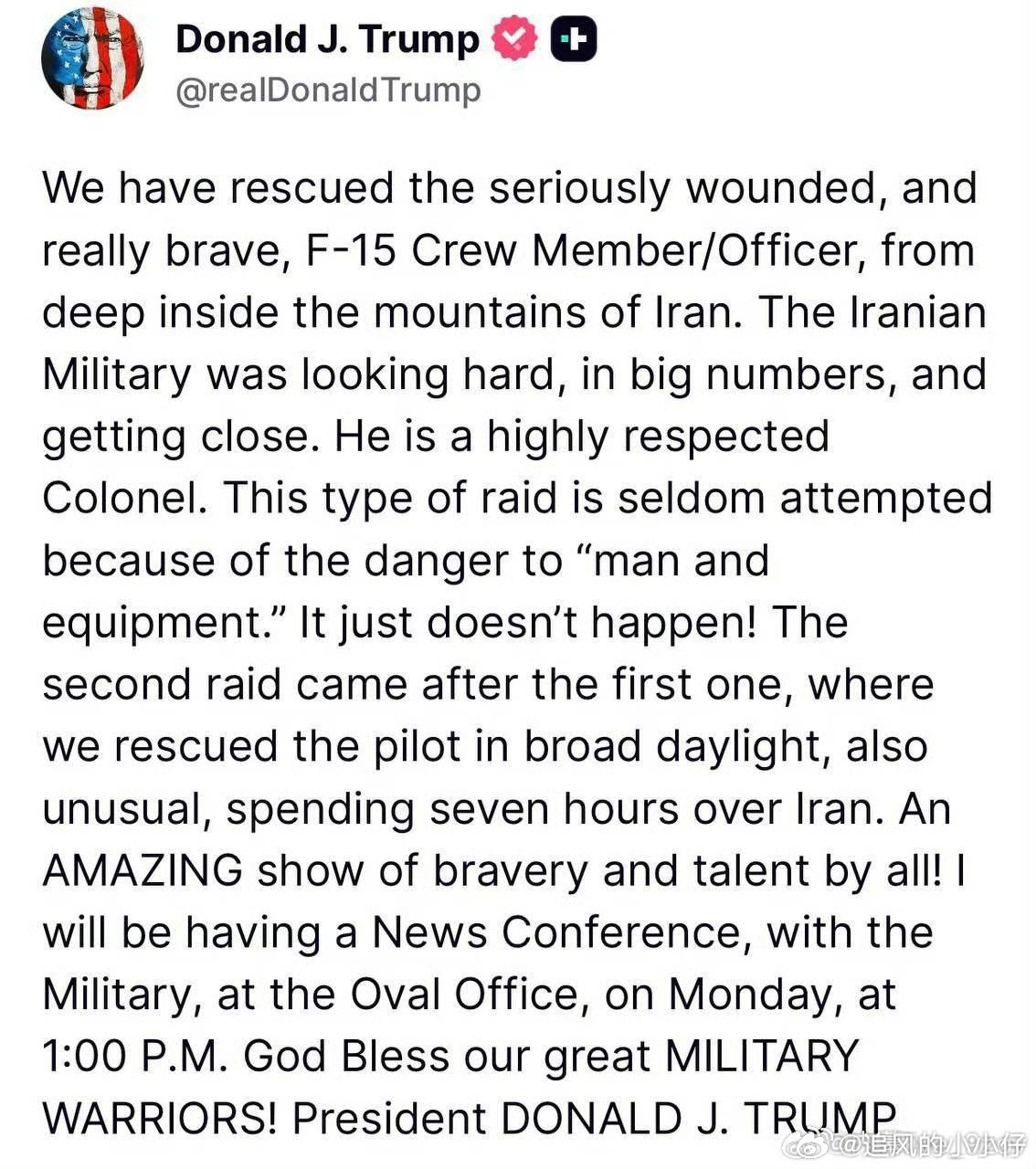 美军营救2名F-15E战机机组行动已确认损失,不完全统计如下:1架F-15E“攻