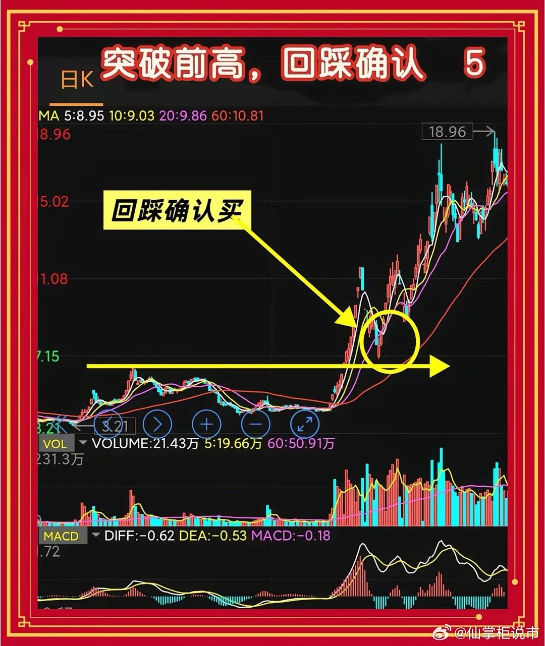 高胜率的五种实战形态一、双底形态,W底确认股价两次探底,第二次低点不低于第一次,形成W形状。关键看颈线,就是两个底中间的高点连线。放量突破颈线时进场,说明下方支撑强劲,主力吸筹完毕。止损设在颈线下方或右底下方,突破时必须有成交量配合。二、双顶形态,M顶逃顶股价两次冲高,第二次高点不超过第一次,形成M形状。跌破两顶之间的低点连线时离场,二次冲不上去说明抛压沉重。跌破颈线最好有放量,缩量跌破可能是假动作,多观察一两天再决定。三、箱体突破,洗盘结束股价横盘一个月以上,成交量持续萎缩。某日突然放量,至少是日均量的两倍,突破箱体上沿且收盘站稳。长期洗盘后主力启动,往往有一波行情。止损设在箱体上沿下方三到五个点,注意大盘不能是单边下跌。四、缩量回踩,均线支撑上升趋势中股价回调,到20日线或60日线附近出现明显缩量,十字星或小阳线,次日不破均线就买入。缩量说明抛压枯竭,均线提供支撑。20日线适合做短线,60日线适合中长线。放量跌破均线就放弃。五、突破前高,回踩确认放量突破前期重要高点后缩量回调,回到前高点附近止跌,再次放量阳线时买入。前高点从压力变成支撑,这是典型加仓点。回调必须缩量,跌破前高点三个点以上形态失效。这五种形态都是实战中验证过的高概率机会,关键是严格执行纪律,该止损时不犹豫。觉得有用就点个赞,关注我看更多实战技巧,有问题评论区交流,收藏起来反复看,转发给炒股的朋友一起进步。本文仅供思路交流,不作投资推荐。股市有风险,入市需谨慎。