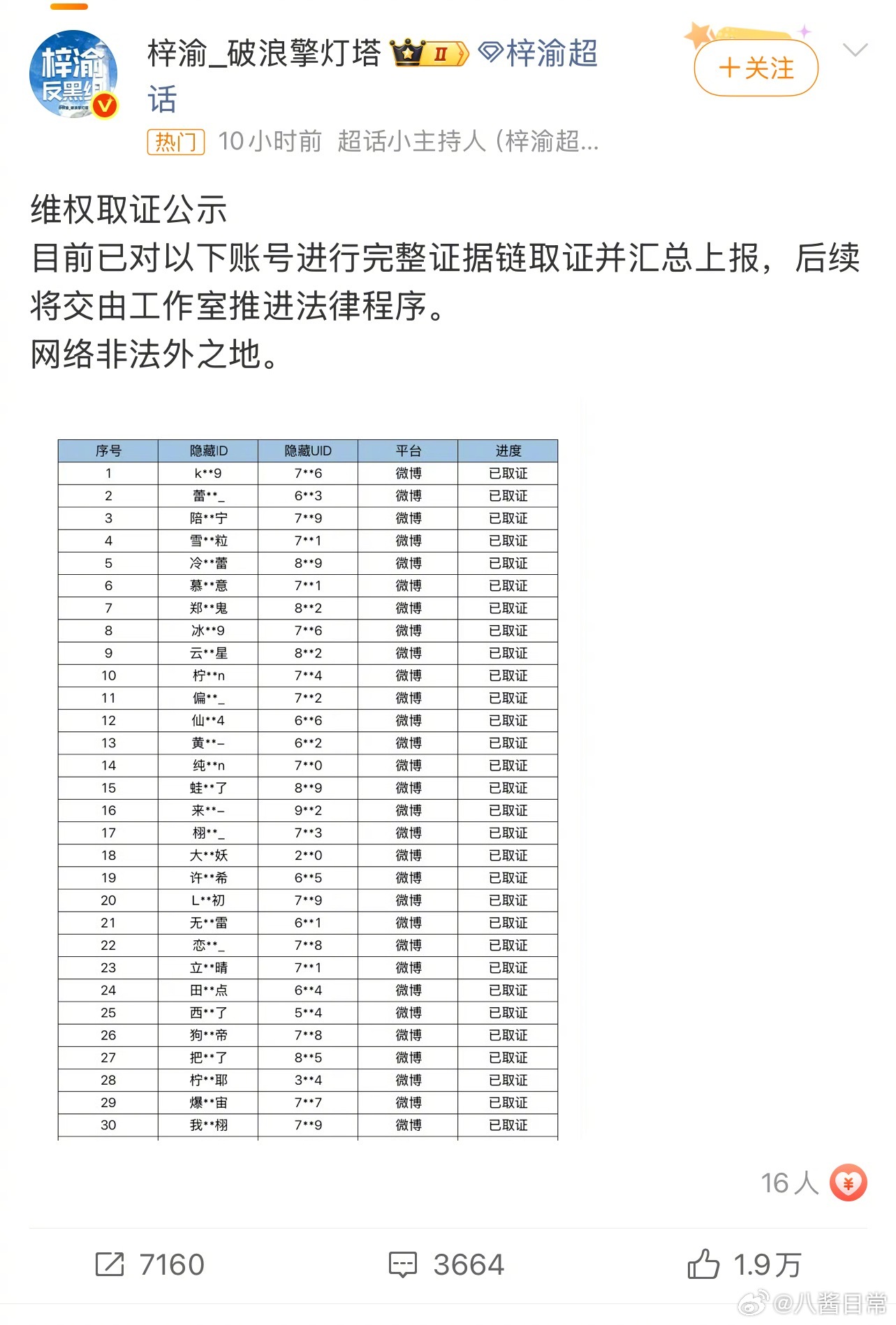 梓渝反黑组取证了田栩宁粉丝,并提交给梓渝工作室