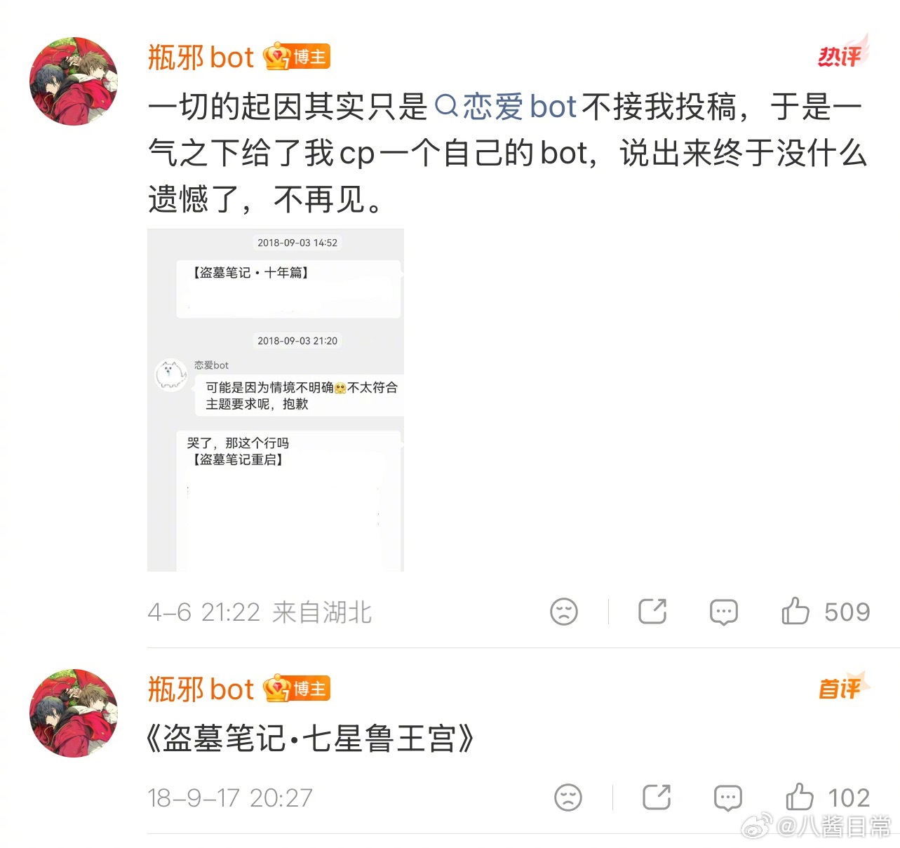 瓶邪bot停更了