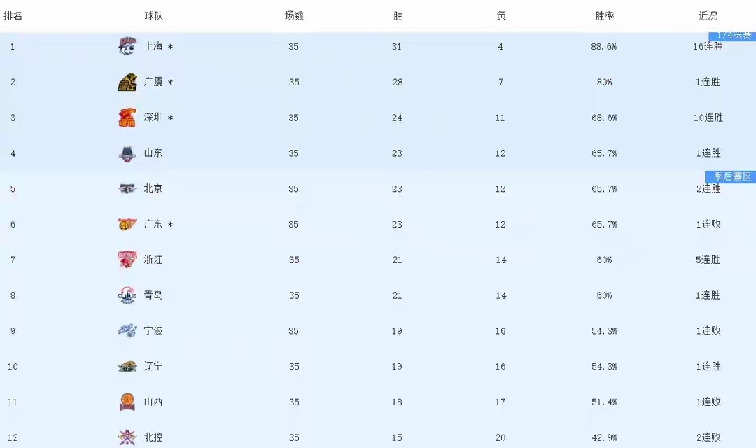 二、积分榜大洗牌:广东跌第6,山东反超,深圳10连胜狂飙