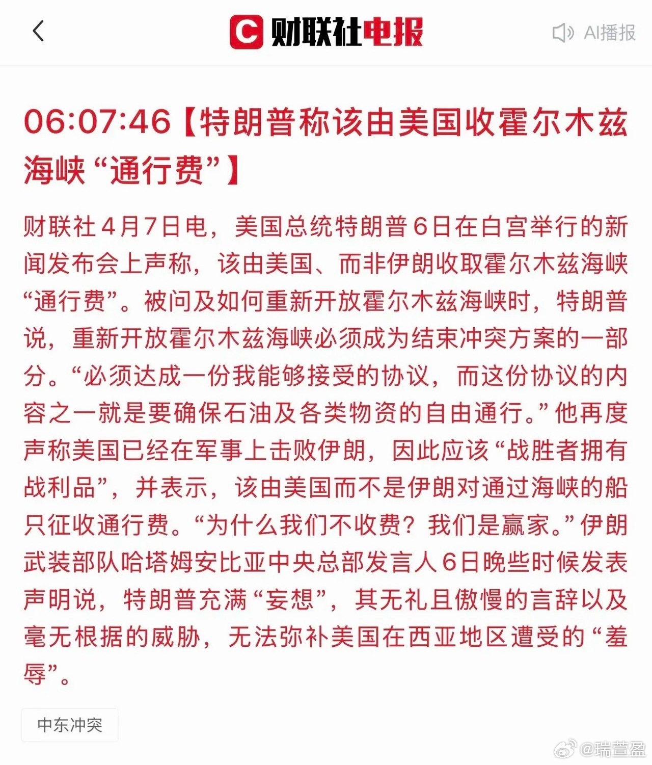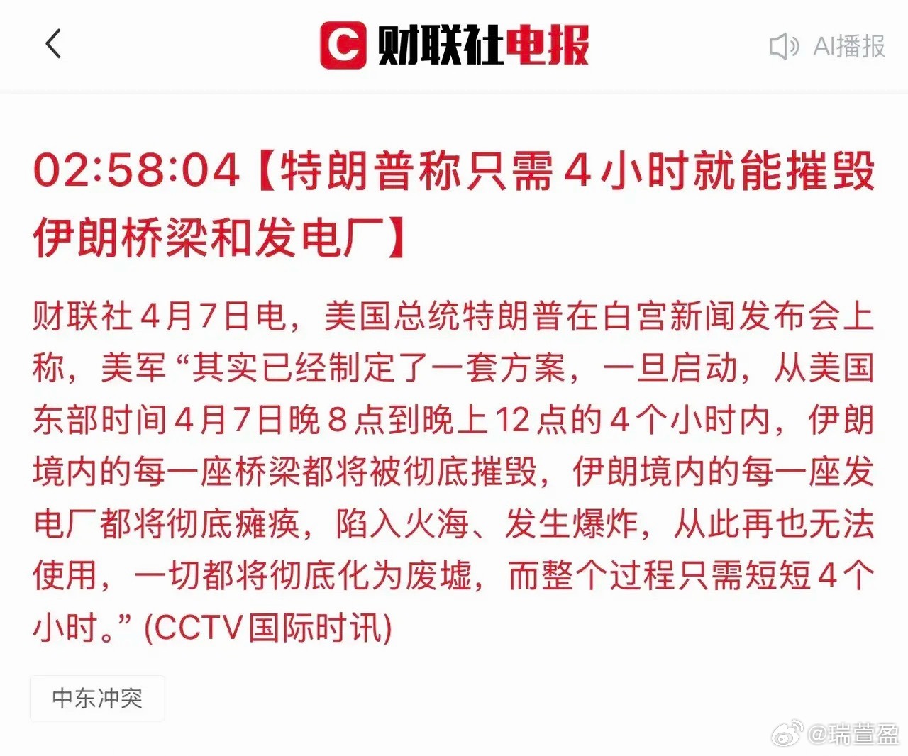 2. 特朗普公开威胁,称数小时内便可摧毁伊朗桥梁与电厂,甚至扬言可快速击溃对手,并将最后期限定在美国东部时间7日晚8点,对应北京时间4月8日早8点。市场普遍担忧明早八点后局势可能升级,资金避险情绪明显升温。