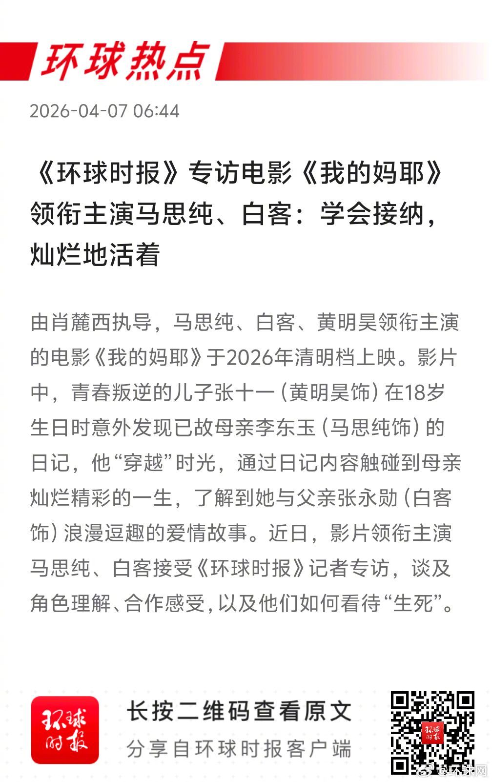 ▲ #马思纯白客谈如何看待生死#