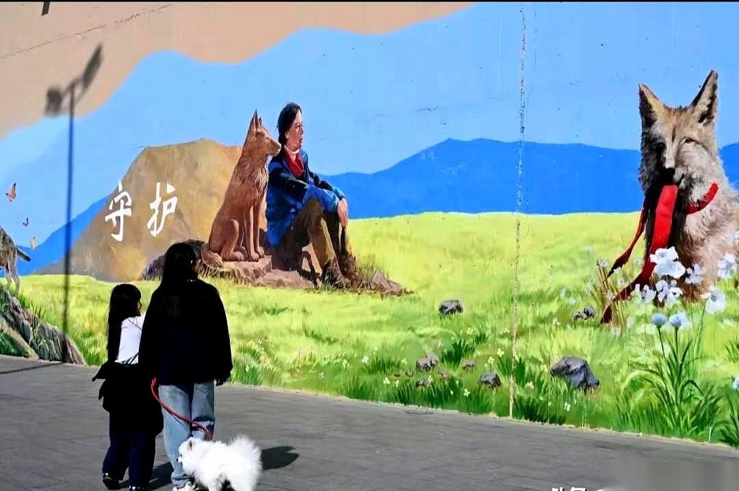 这面墙绘不只是为了纪念。画面上,格林从幼崽到孤狼的瞬间一一闪过。李微漪说,爱不是圈养,是放手,是不打扰。她救下一只格林,发现救不了整个狼群;她走进草原,才发现最需要改变的是城市的成见。