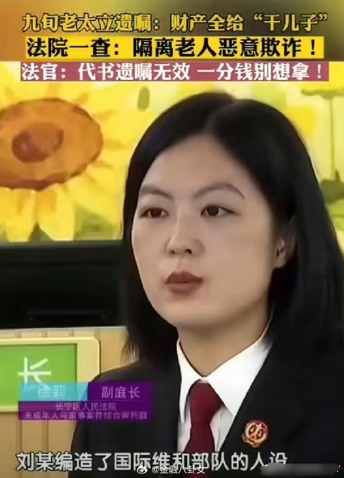九旬老太遗产全给干儿子被法院驳回编造军人人设骗老人信任,故意不让老人跟家人联系,诱导立遗嘱,这种遗嘱就该无效!