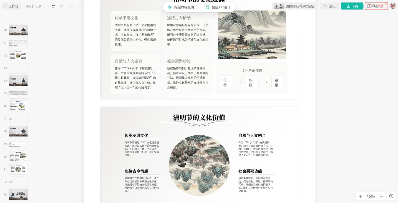 只要输入主题和大纲,10秒就能生成一套完整的PPT,还自带精美的模板和配图。
