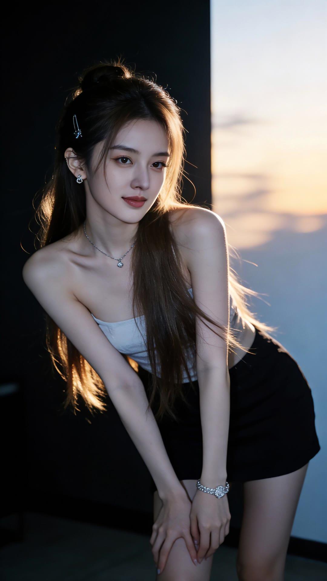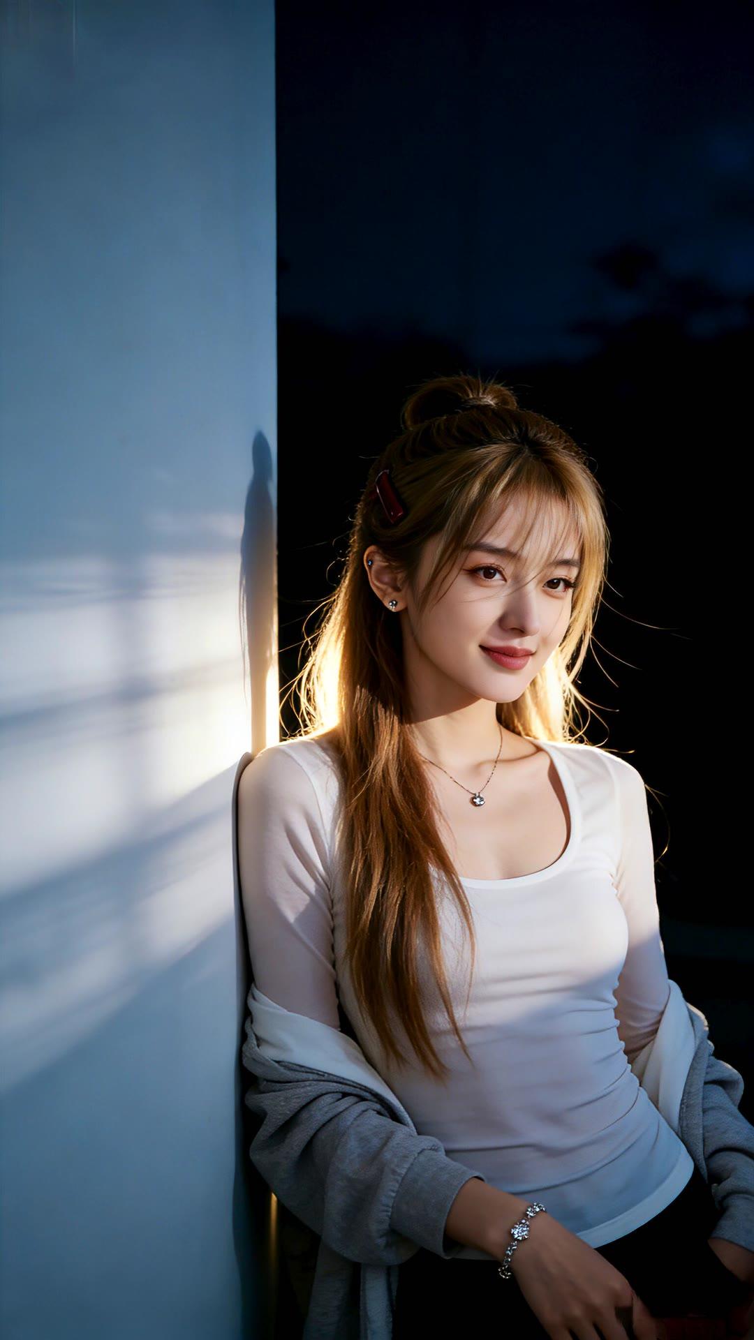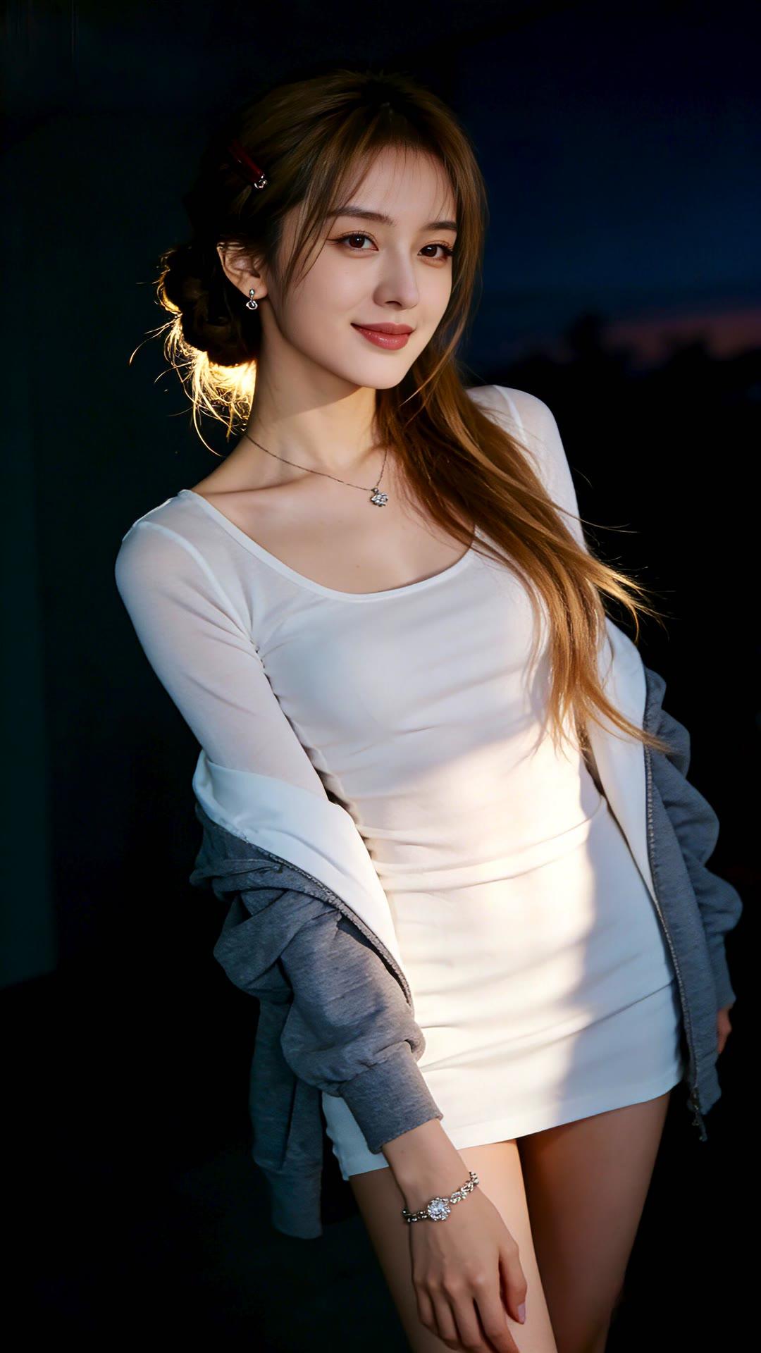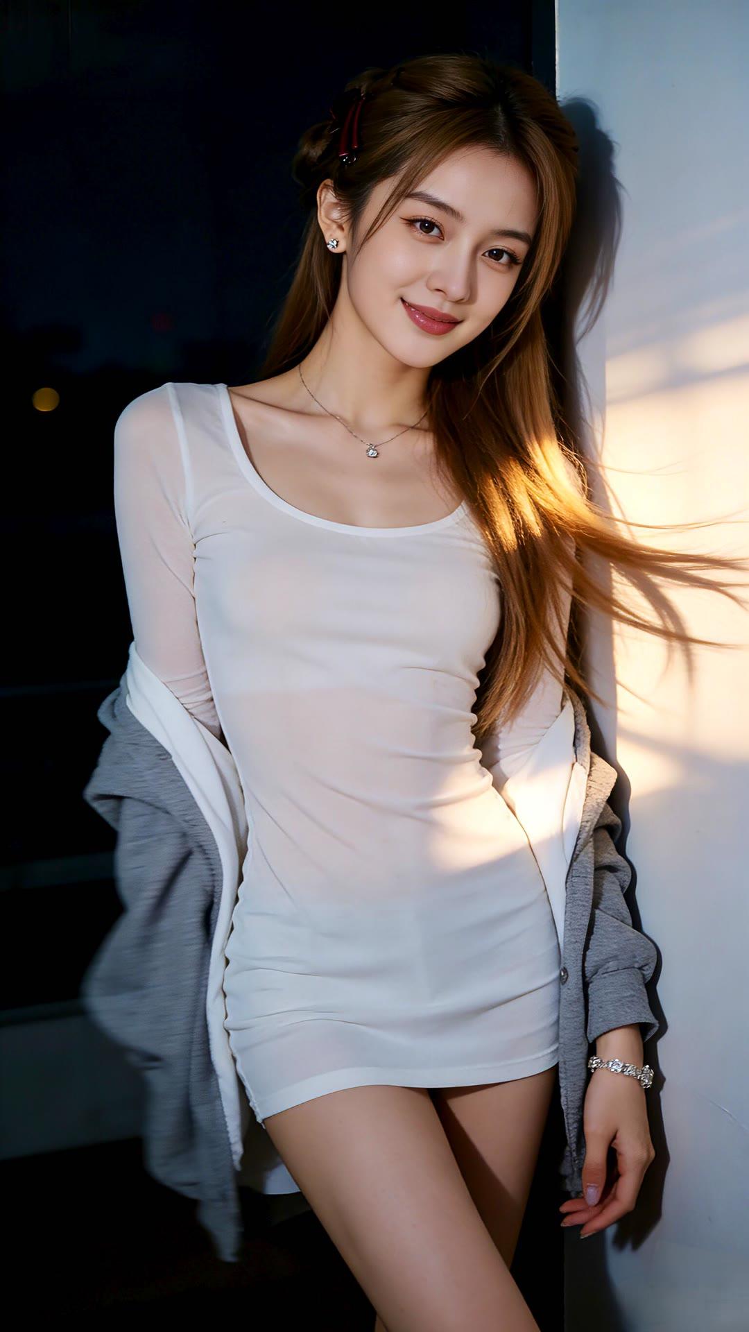 温柔甜美的少女,白色针织裙搭配珍珠项链,散发着优雅的气息。💖✨