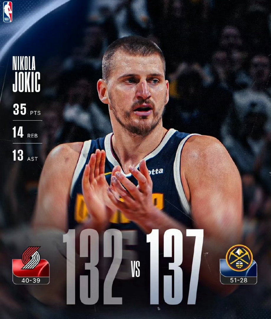 北京时间4月7日,2025-2026赛季NBA常规赛西部卡位战迎来巅峰对决,丹佛掘金坐镇主场迎战波特兰开拓者。这场比赛直接改写西部排名格局:掘金在最多落后18分的绝境下完成史诗级逆转,加时137-132击败开拓者,豪取9连胜的同时,以51胜28负的战绩成功反超湖人,升至西部第三;而湖人则跌至第四,西部季后赛席位争夺彻底白热化,掘金排名反超湖人 话题冲上体育TOP9热搜,81.8万阅读量见证这场西部格局剧变!一、比赛全程:18分绝境翻盘,加时赛终结悬念