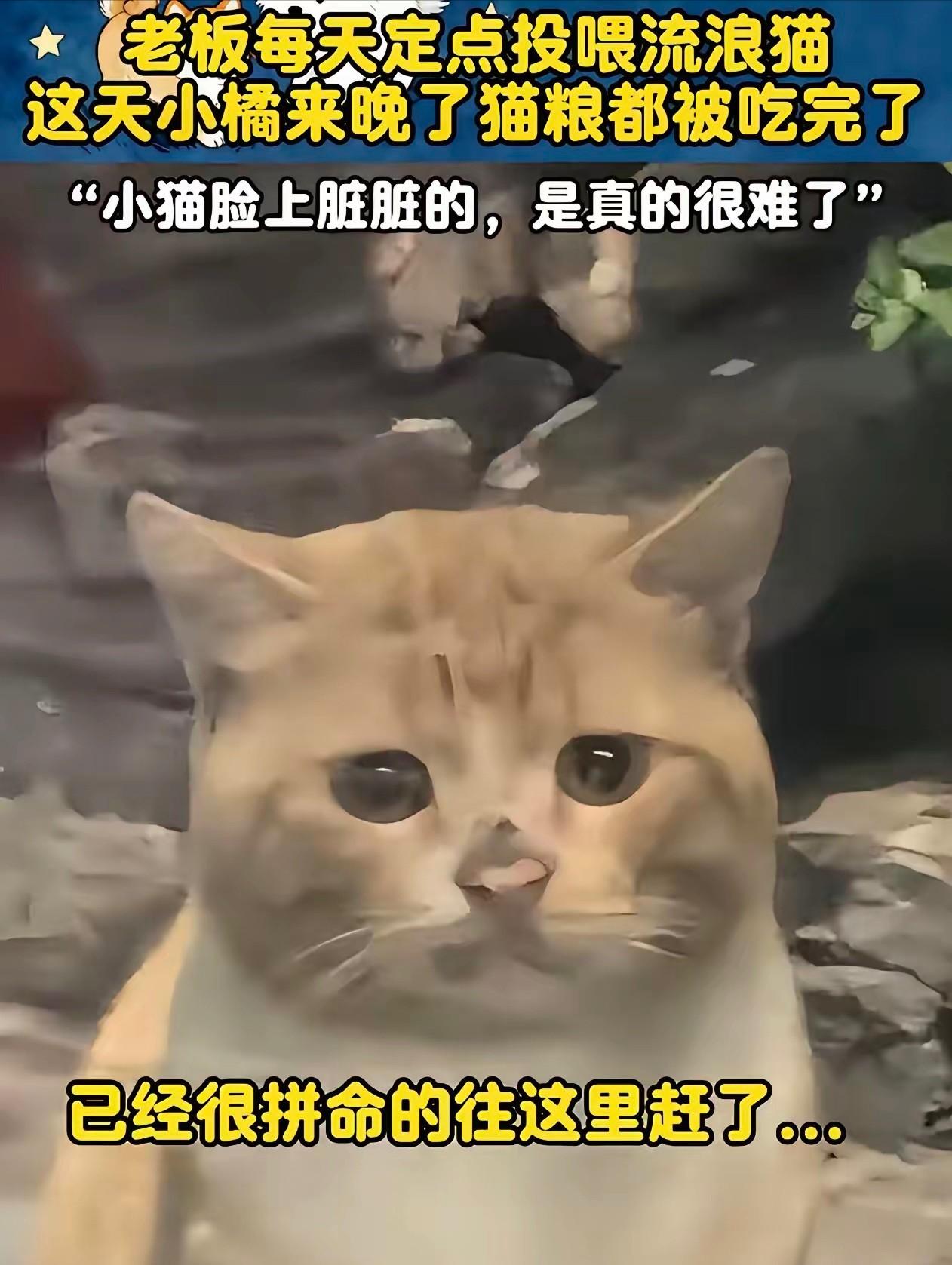 周围的流浪猫很快摸清了规律,到点就蹲门口等着开饭。唯独这只小橘,每次都是最后一个到,气喘吁吁,脸上糊着泥,毛乱得跟刚从柴火堆里钻出来似的。