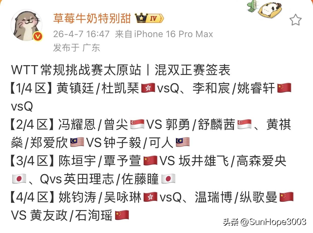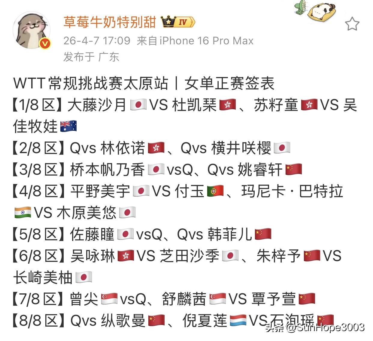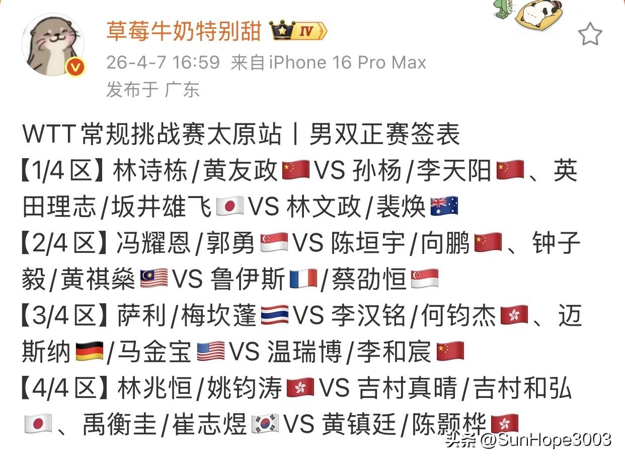 常规挑战赛太原站签表,林诗栋黄友政首轮内战,