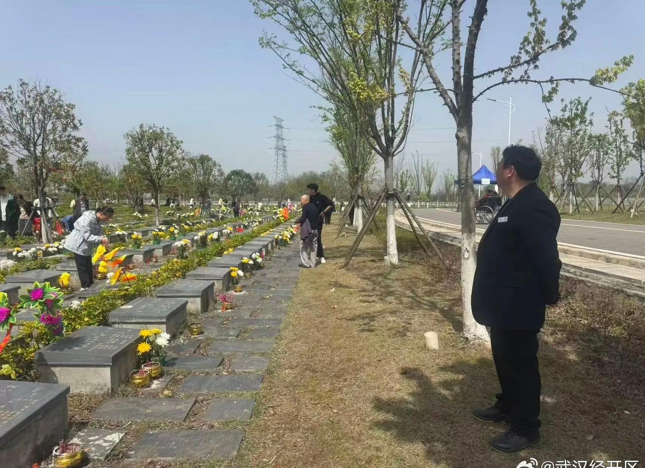 【清明假期 武汉经开区绿色文明祭扫蔚然成风】4月5日,天气晴好,武汉经开区滩头山生态公益性公墓迎来祭扫高峰。在滩头山生态公益性公墓门口,公安、交管设置值守点,为祭扫群众提供引导咨询、秩序维护等服务,街道、社区工作人员、志愿者为祭扫群众免费发放由爱心企业提供的“暖心包”,里面包含矿泉水、点心、毛巾、提示卡、雨衣等物品。网页链接