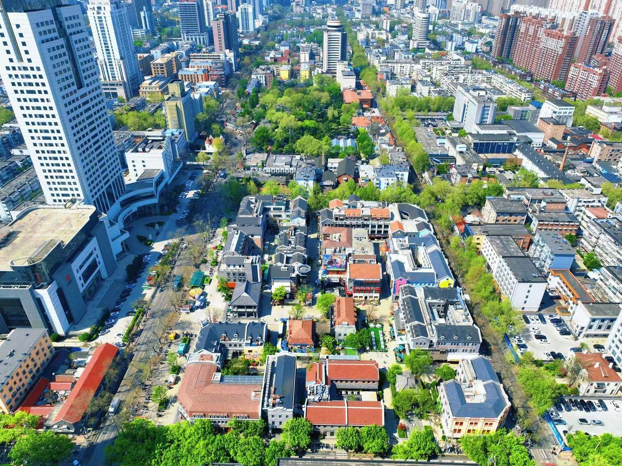 4月7日,泉城春光明媚,午时暖意浓浓,俯瞰济南老商埠街区,到处都是一派生机勃勃、春意盎然的景象,绿树环绕下的仿古建筑别具韵味,吸引了市民游客前来感受春日浪漫,体验济南的历史与现代交融的韵味。风景>>-app/#/content?catid=39&id=5239882(LY)
