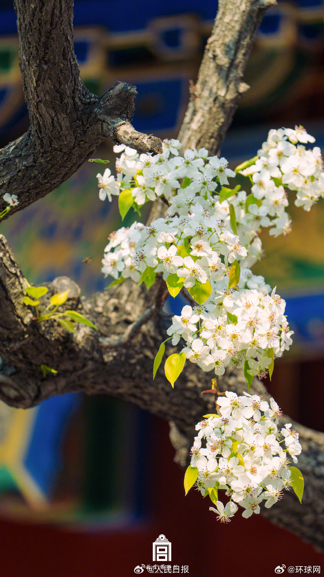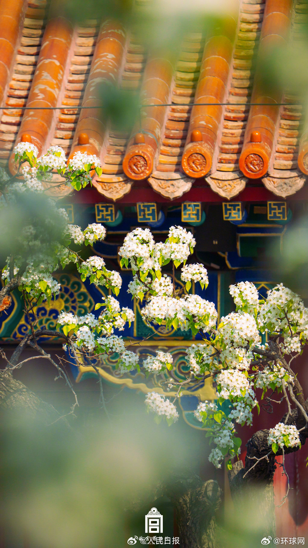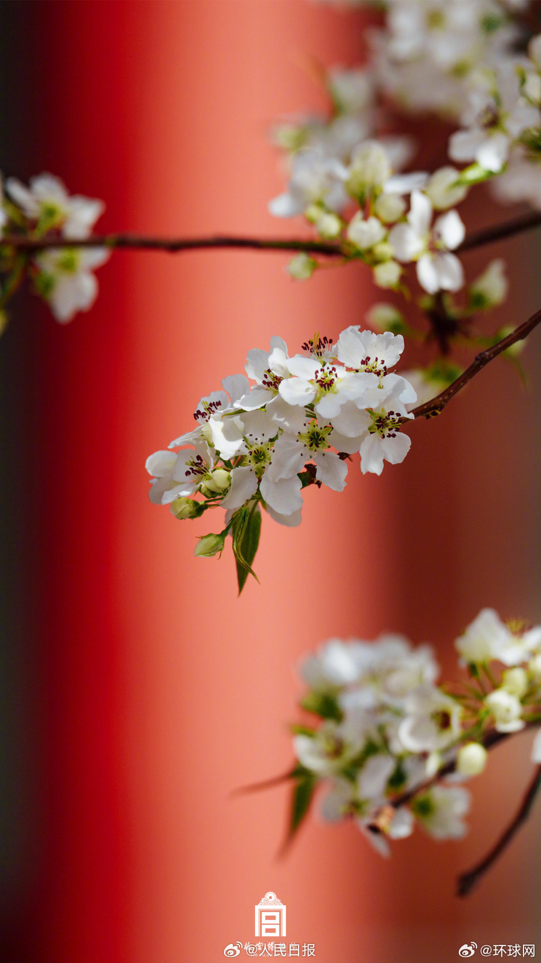 【一键收藏!#你的春日壁纸故宫承包了#】#红墙映梨花怎么这么美# 一树梨花白,春