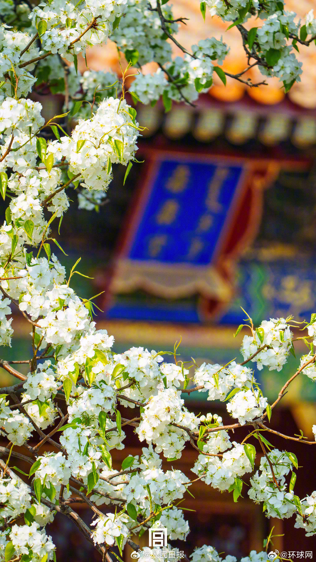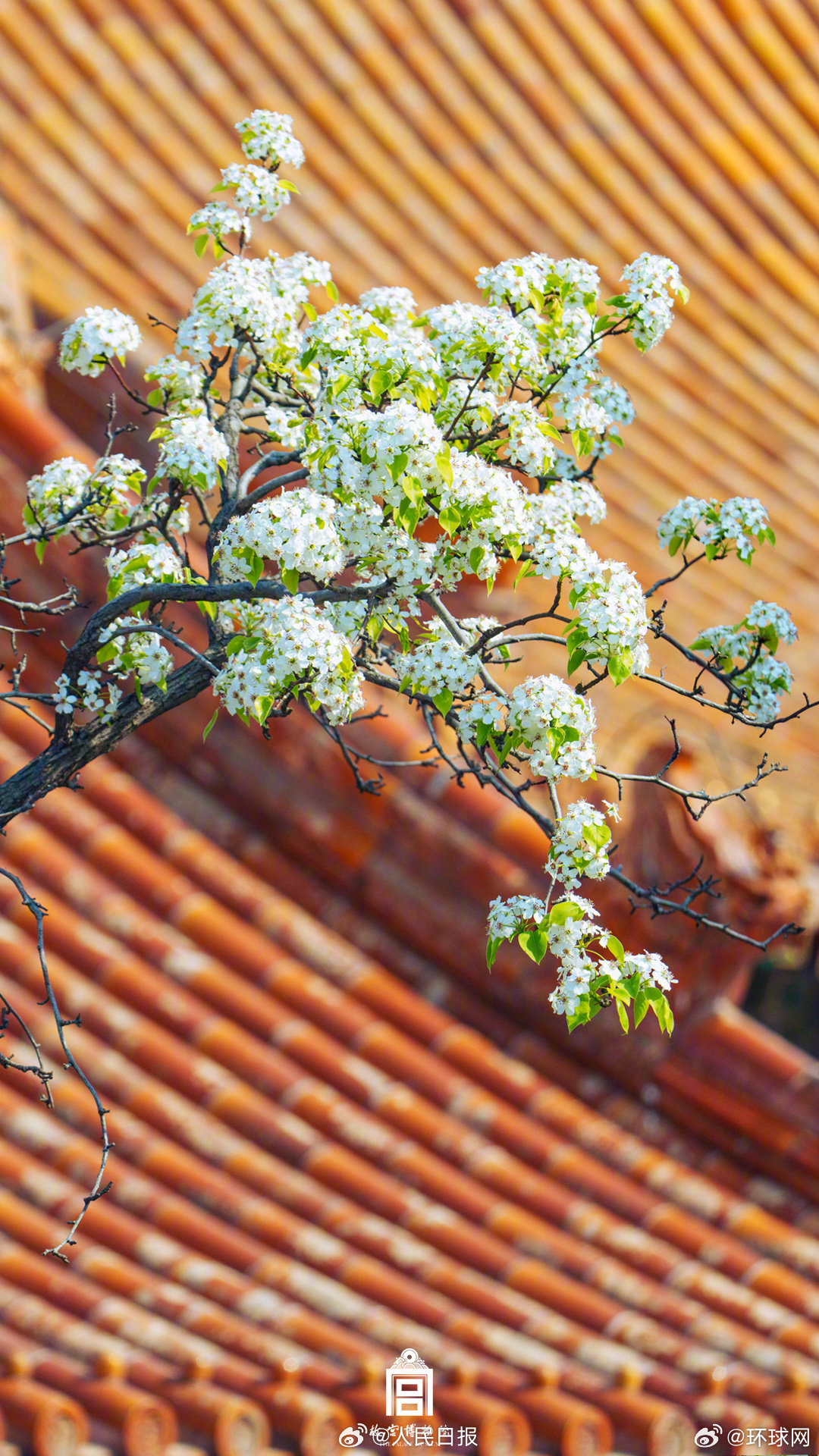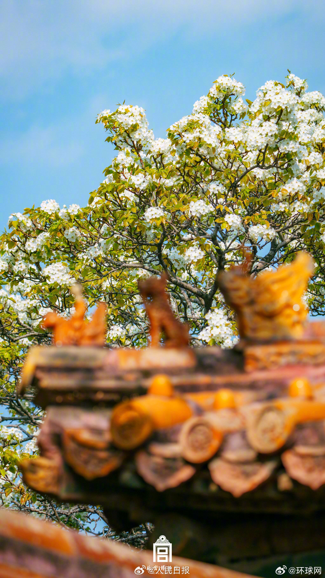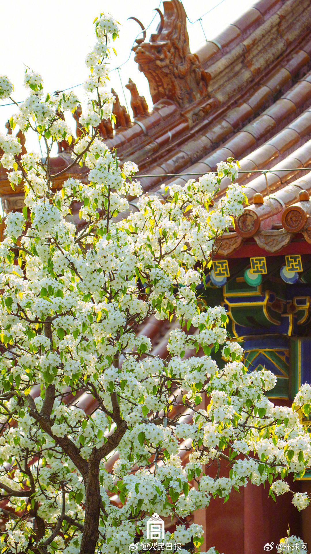 【一键收藏!#你的春日壁纸故宫承包了#】#红墙映梨花怎么这么美# 一树梨花白,春