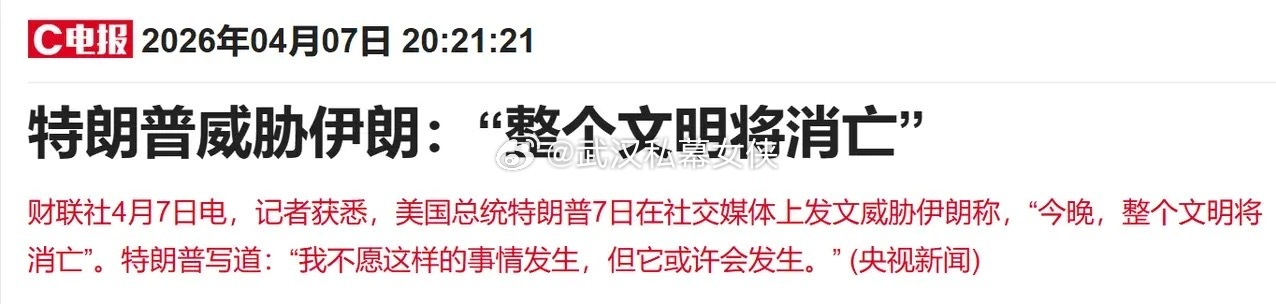 今夜,全球股市投资者可能都要彻夜难眠了!“最后期限”将至,川普再放话威胁:整个文明将消亡