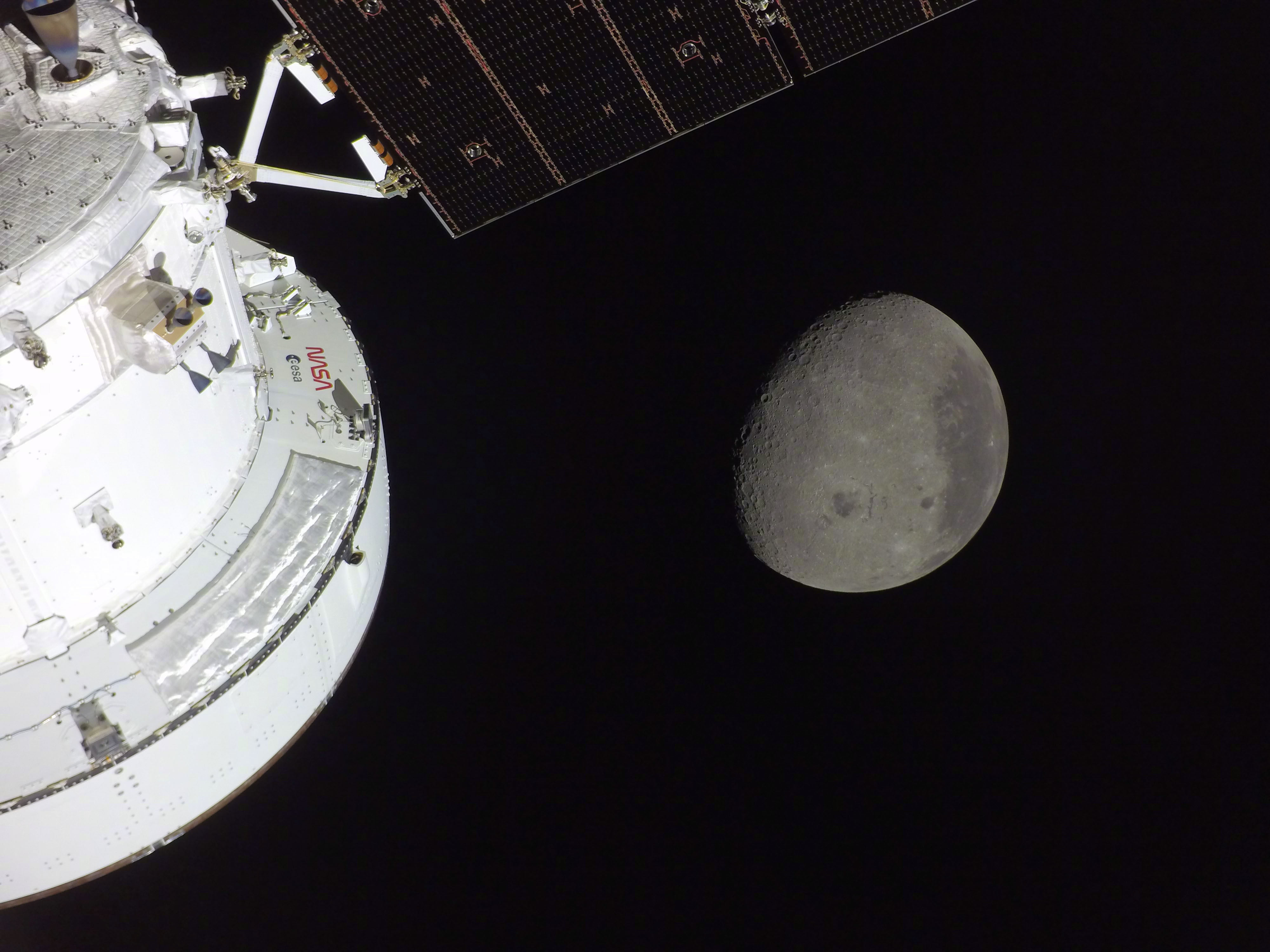 NASA又更新了一组舱外摄像头拍摄的高清画面,记录了北京时间昨天清晨,阿尔忒弥斯2号任务组飞掠月球,经历“地落”,以及飞过月影经历“月全食”的精彩画面。跟舱内宇航员拍摄的那组(网页链接)相比,少了一些热闹的氛围。图源:NASA