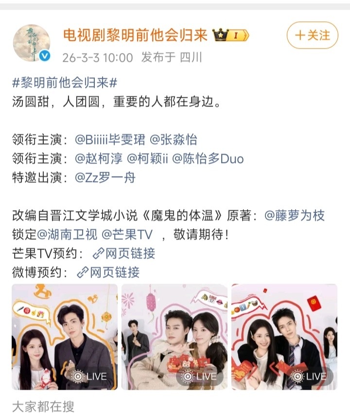 疑似毕雯珺粉丝说配角加戏然后放了赵柯淳的照片配图,内涵男二柯淳飞页加戏。