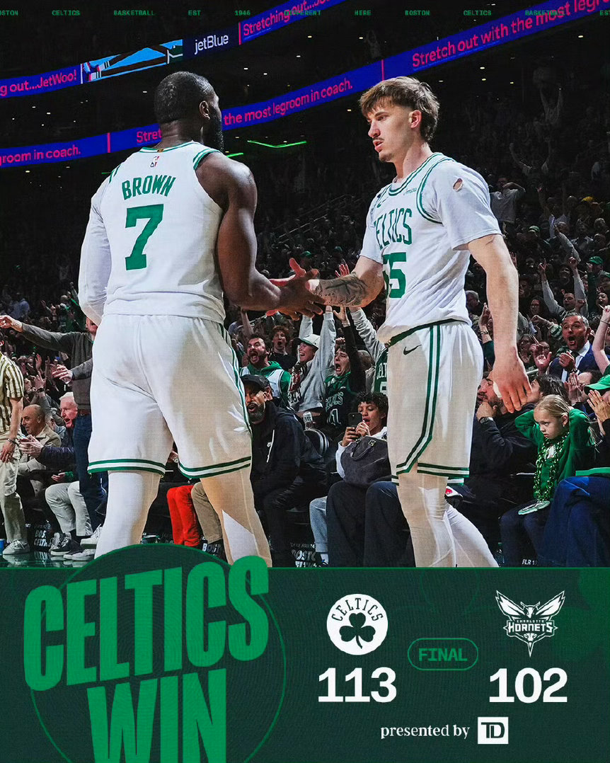 北京时间4月8日,25/26赛季NBA常规赛继续进行,波士顿凯尔特人坐镇主场迎战夏洛特黄蜂。经过四节激烈较量,凯尔特人以113-102击败黄蜂,拿下这场胜利的同时,进一步巩固了自己东部榜首的位置,而黄蜂虽遗憾落败,但比赛中上演的罕见双人空接名场面,也成为了全场最亮眼的瞬间之一。