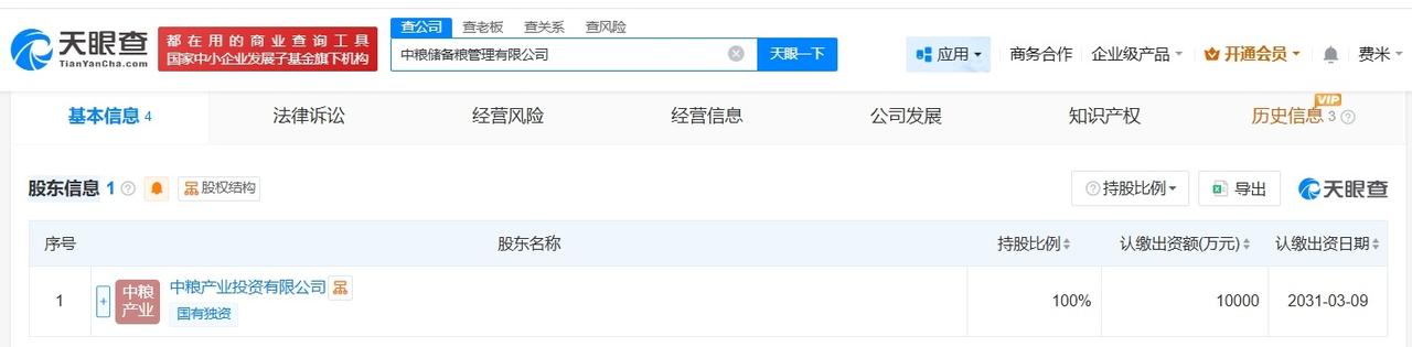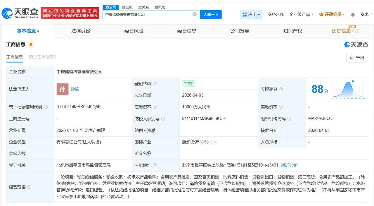 天眼查App显示,近日,中粮储备油管理有限公司、中粮储备粮管理有限公司成立,法定代表人分别为李诚琨、孙豹,注册资本均为1亿人民币,经营范围包括粮油仓储服务、粮食收购、初级农产品收购等,上述两家公司均由中粮产业投资有限公司全资持股。