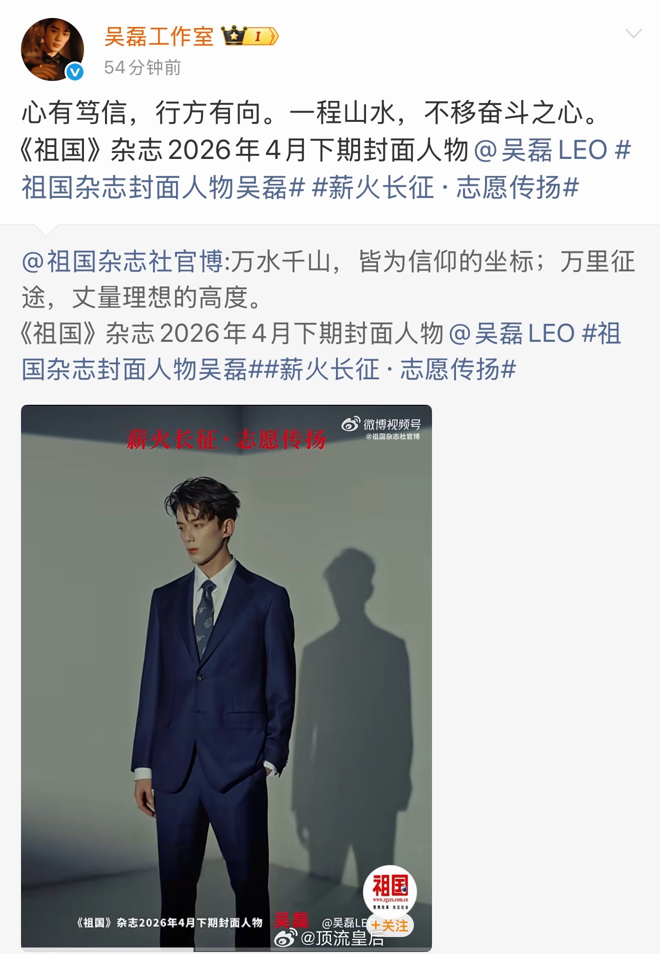 祖国杂志封面人物吴磊《祖国》杂志创刊以来,首次邀请文艺界人士担任封面人物,好正能